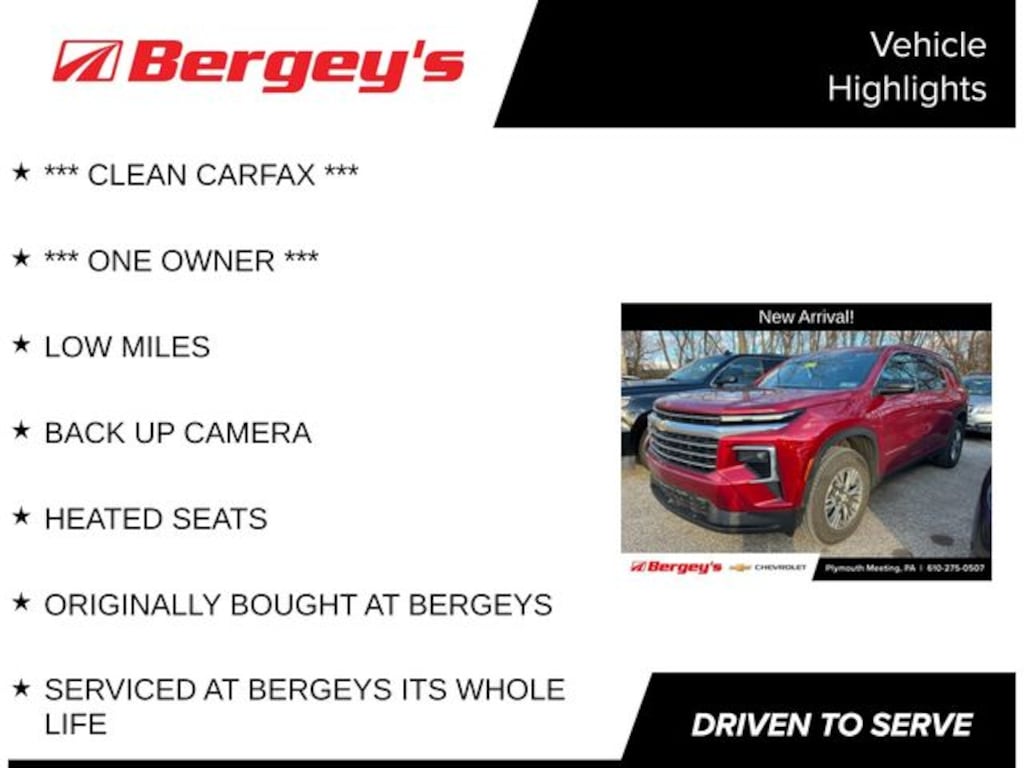 Recent Arrival! *** CLEAN CARFAX ***, *** ONE OWNER ***, LOW MILES, BACK UP CAMERA, HEATED SEATS, ORIGINALLY BOUGHT AT BERGEYS, SERVICED AT BERGEYS ITS WHOLE LIFE, AWD. Certified. Certification Program Details: *6-Month/6,000-Mile Bumper-to-Bumper Limited Warranty*, whichever comes first, in addition to any remaining original factory Bumper-to-Bumper warranty. See participating dealer and warranty booklet for limited warranty eligibility and coverage details, including limitations and exclusions. *Except for non-GM vehicles in the State of California, where coverage will be provided by a vehicle service contract. Odometer is 9260 miles below market average!