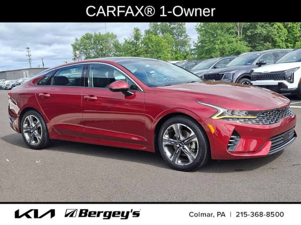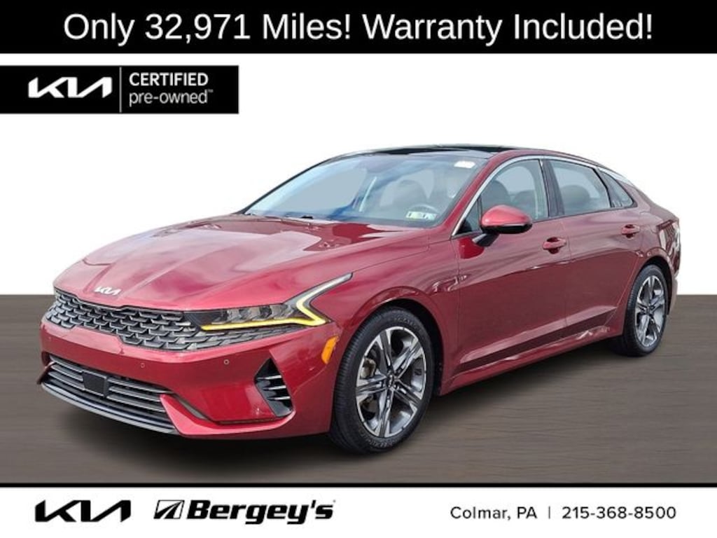 NEW ARRIVAL! SUPER CLEAN KIA CERTIFIED K5 EX!! RED ON BLACK LEATHER! THE RIGHT ONE! SAVE THOUSANDS ON THIS BEAUTIFUL KIA!! ONLY ONE OWNER, CLEAN CARFAX, AND WELL CARED FOR!!! *******AN ORIGINAL BERGEYS KIA CAR. SOLD, SERVICED, AND NOW TRADED BACK TO BERGEYS!!***** COMES FULLY SERVICED W/ NEW PA INSPECTION, OIL CHANGE, A FRESH DETAIL, AND A GREAT WARRANTY!!