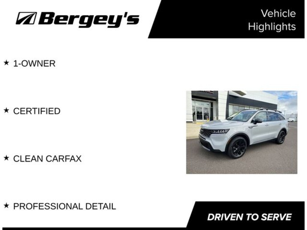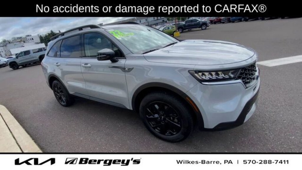 Certified. Wolf Gray 2022 Kia Sorento S AWD 8-Speed Automatic 2.5L I4 DGI DOHC 16V LEV3-ULEV70 191hp Kia Certified Pre-Owned Certified, AWD, 3rd row seats: split-bench, 4-Wheel Disc Brakes, 4.081 Axle Ratio, 6 Speakers, ABS brakes, Air Conditioning, Alloy wheels, AM/FM radio: SiriusXM, Apple CarPlay & Android Auto, Auto High-beam Headlights, Automatic temperature control, Brake assist, Bumpers: body-color, Cargo Net, Carpeted Cargo Mat w/Seatback Protection, Carpeted Floor Mats, Delay-off headlights, Driver door bin, Driver vanity mirror, Dual front impact airbags, Dual front side impact airbags, Electronic Stability Control, Emergency communication system: UVO Link, Exterior Parking Camera Rear, Four wheel independent suspension, Front anti-roll bar, Front Bucket Seats, Front Center Armrest, Front dual zone A/C, Front reading lights, Fully automatic headlights, Heated door mirrors, Heated Front Bucket Seats, Heated front seats, Illuminated entry, Knee airbag, Leather Shift Knob, Leather steering wheel, Low tire pressure warning, Navigation System, Occupant sensing airbag, Outside temperature display, Overhead airbag, Overhead console, Panic alarm, Passenger door bin, Passenger vanity mirror, Power door mirrors, Power driver seat, Power steering, Power windows, Radio data system, Radio: AM/FM Audio System, Rear air conditioning, Rear anti-roll bar, Rear reading lights, Rear seat center armrest, Rear window defroster, Rear window wiper, Remote keyless entry, Roof rack: rails only, Security system, Smart Key w/ Push Button and Remote Start, Speed control, Speed-sensing steering, Split folding rear seat, Spoiler, Steering wheel mounted audio controls, SynTex Artificial Leather Seat Trim, Tachometer, Telescoping steering wheel, Tilt steering wheel, Traction control, Trip computer, Turn signal indicator mirrors, Variably intermittent wipers, Wheel Locks, Wheels: 7.5J x 18" Gloss Black Alloy, 1-OWNER, CERTIFIED, CLEAN CARFAX, PROFESSIONAL DETAIL, AWD.