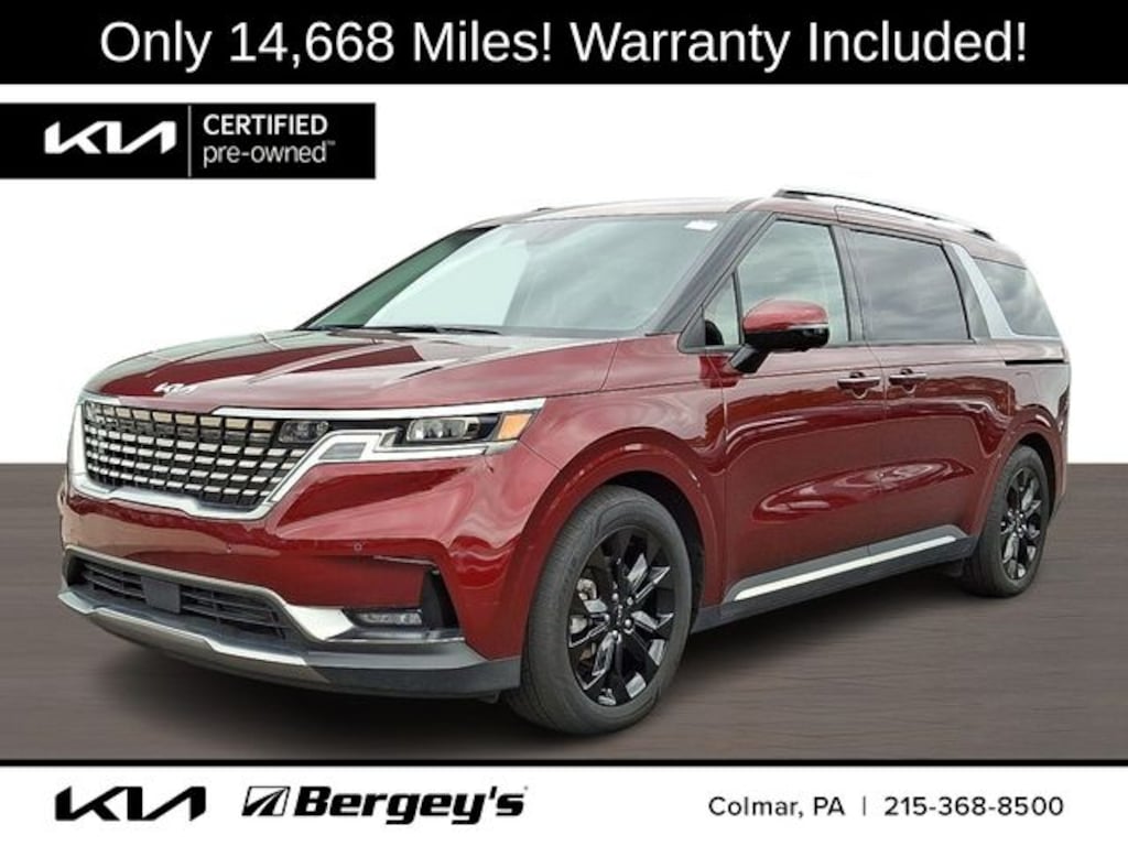 NEW ARRIVAL! SUPER CLEAN KIA CERTIFIED SX PRESTIGE W/ ONLY 14,000 MILES!! BARELY DRIVEN!! SPOTLESS INSIDE AND OUT!! SAVE THOUSANDS ON THIS BEAUTIFUL CARNIVAL!! ONLY ONE OWNER, CLEAN CARFAX, AND WELL CARED FOR!!! COMES FULLY SERVICED W/ NEW PA INSPECTION, OIL CHANGE, A FRESH DETAIL, AND A GREAT WARRANTY! TONS OF PROTECTION!