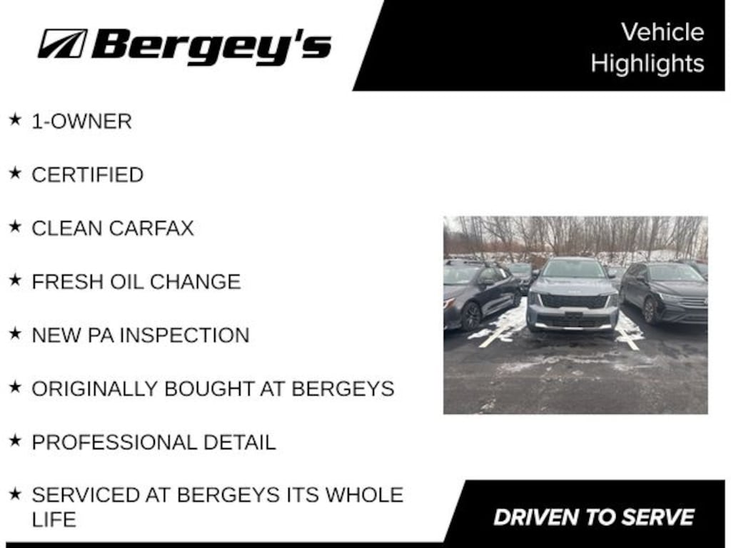 Certified. Everlasting Silver 2024 Kia Sorento S AWD 8-Speed Automatic 2.5L I4 DGI DOHC 16V LEV3-SULEV30 191hp 1-OWNER, CERTIFIED, CLEAN CARFAX, FRESH OIL CHANGE, NEW PA INSPECTION, ORIGINALLY BOUGHT AT BERGEYS, PROFESSIONAL DETAIL, SERVICED AT BERGEYS ITS WHOLE LIFE, AWD.