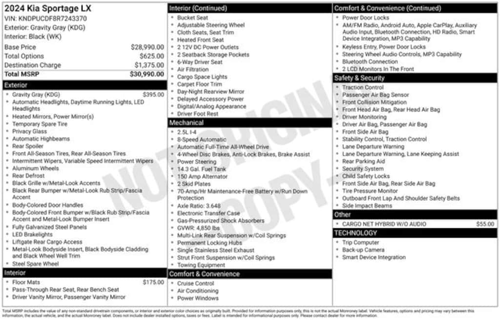 Certified. Gravity Gray 2024 Kia Sportage LX AWD 8-Speed Automatic I4 AWD.