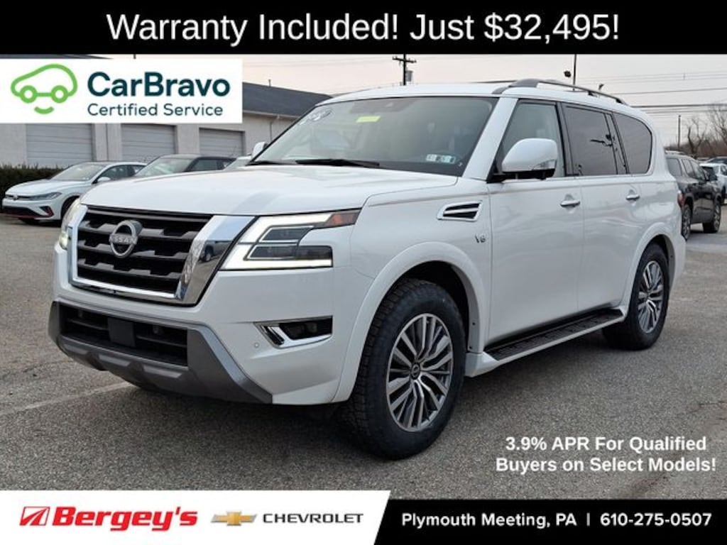 2022 Aspen White Tricoat Nissan Armada 4WD 5.6L V8 DOHC 32V LEV3-ULEV125 400hp 7-Speed Automatic