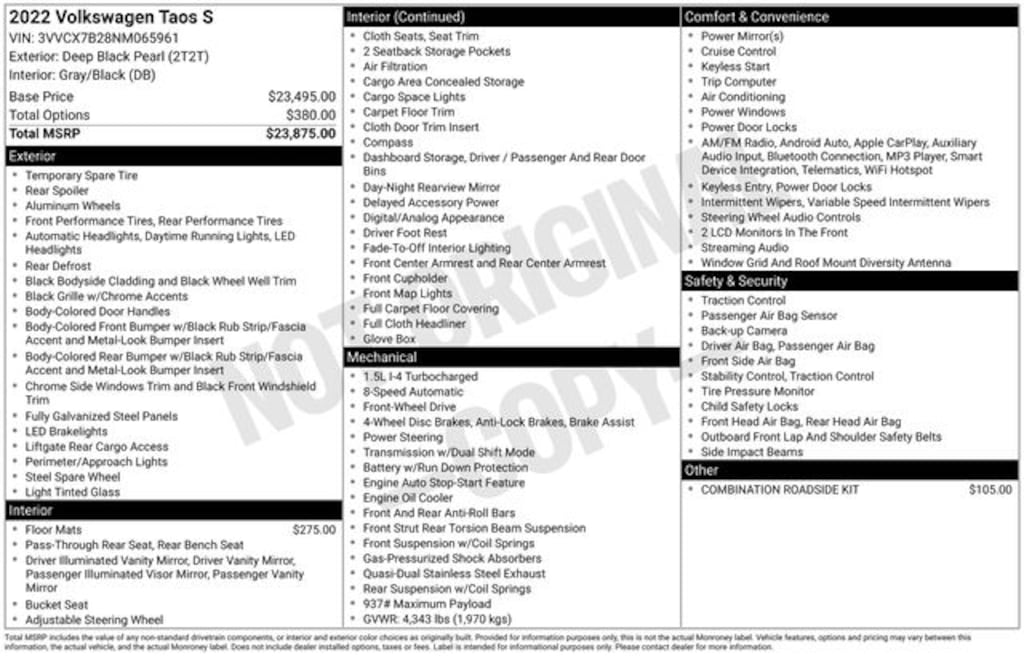 Certified Pre Owned 2022 VolkswagenTaos 1.5T S