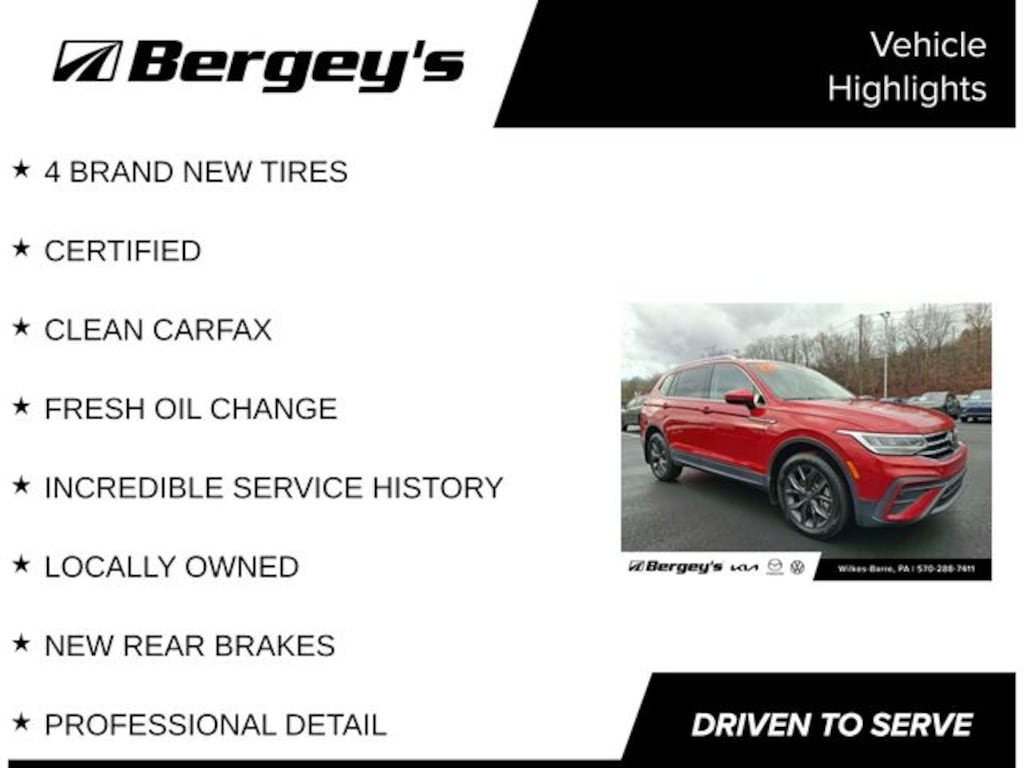 Certified. Kings Red Metallic 2022 Volkswagen Tiguan 2.0T SE AWD 8-Speed Automatic with Tiptronic 2.0L TSI DOHC 4 BRAND NEW TIRES, CERTIFIED, CLEAN CARFAX, FRESH OIL CHANGE, INCREDIBLE SERVICE HISTORY, LOCALLY OWNED, NEW REAR BRAKES, PROFESSIONAL DETAIL, AWD.