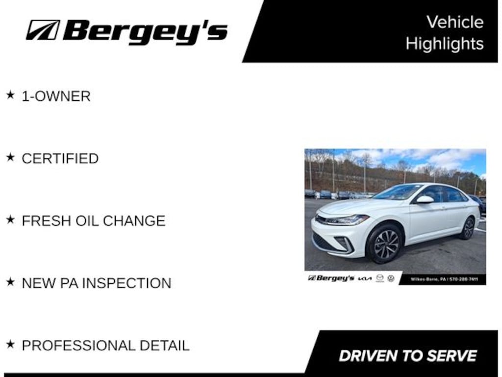 Certified. Pure White 2025 Volkswagen Jetta 1.5T S FWD 8-Speed Automatic with Tiptronic 1.5L I-4 DI DOHC Turbocharged 1-OWNER, CERTIFIED, FRESH OIL CHANGE, NEW PA INSPECTION, PROFESSIONAL DETAIL, Black Cloth.