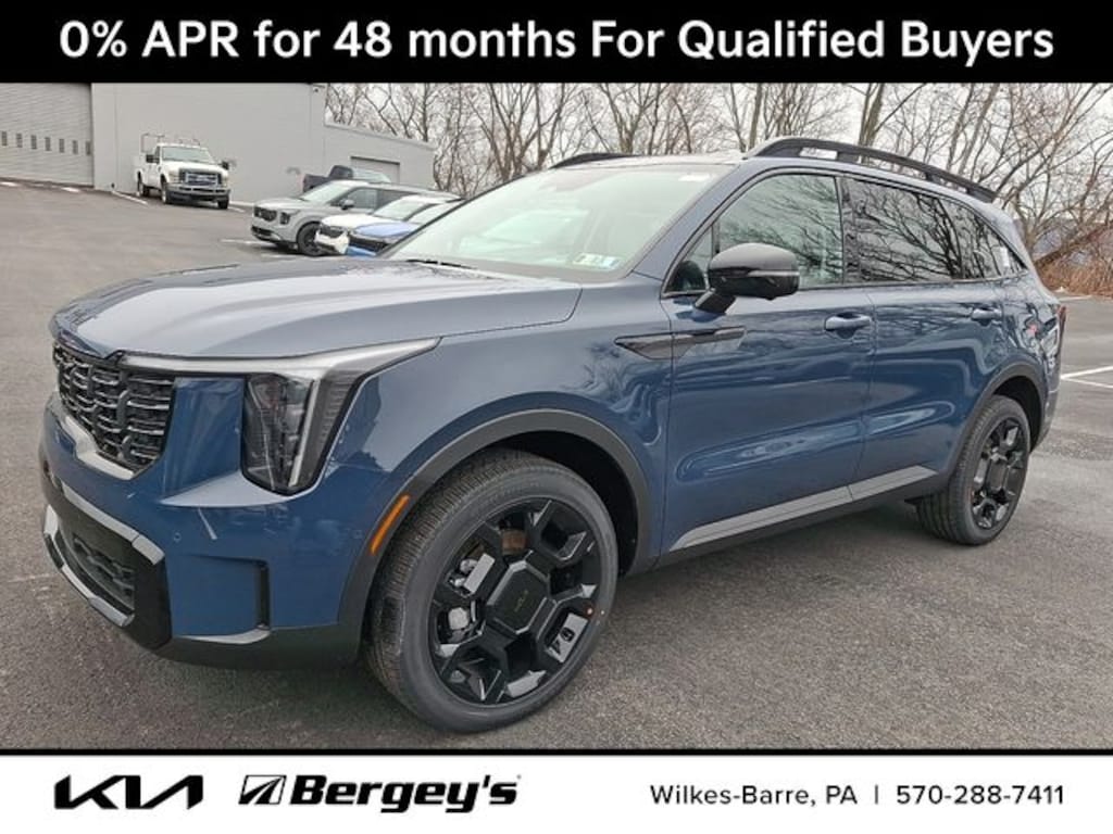 Midnight Lake Blue 2026 Kia Sorento X-Line SX AWD 8 Speed Dual Clutch 2.5L I4 DGI Turbocharged DOHC 16V LEV3-SULEV30 281hp AWD.