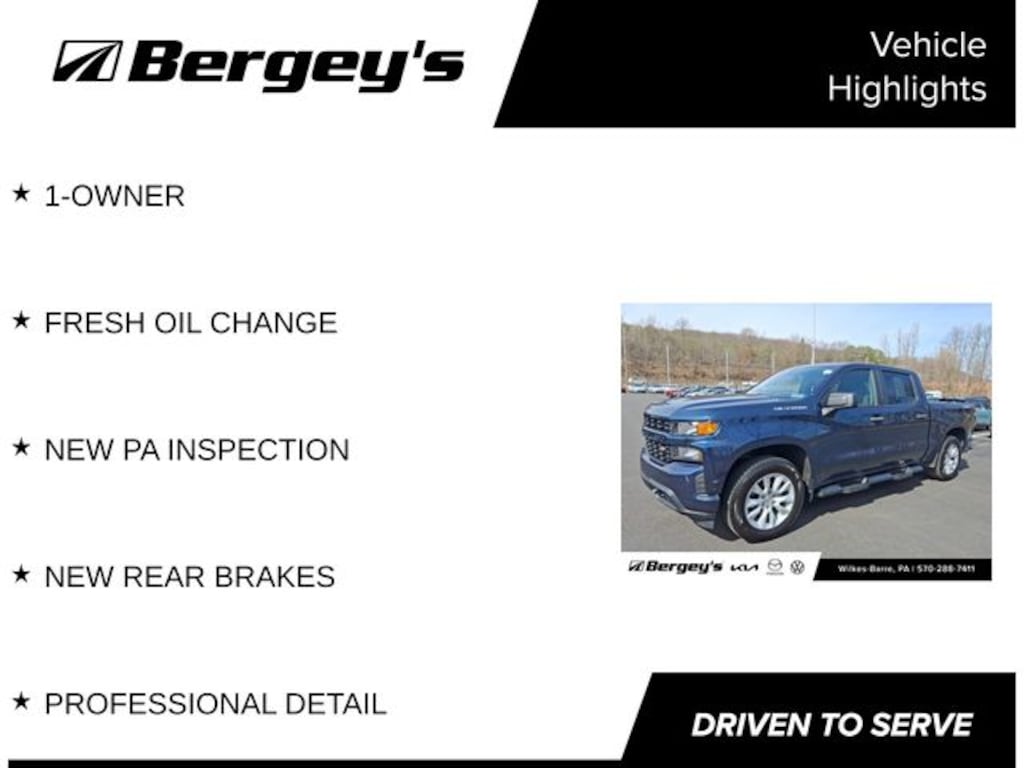 For added safety and peace of mind, this Silverado is equipped with a suite of advanced driver-assistance technologies, including electronic stability control, traction control, and a rearview camera. And with its durable, body-color exterior and polished exhaust tip, this truck looks as good as it performs.