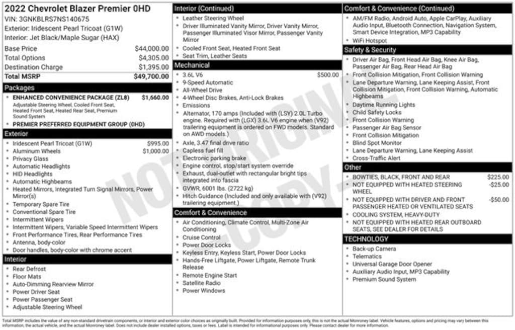 Iridescent Pearl Tricoat 2022 Chevrolet Blazer Premier AWD 9-Speed Automatic with Overdrive 3.6L V6 SIDI CLEAN CARFAX, FRESH OIL CHANGE, INCREDIBLE SERVICE HISTORY, LOCALLY OWNED, NEW PA INSPECTION, PROFESSIONAL DETAIL, AWD.