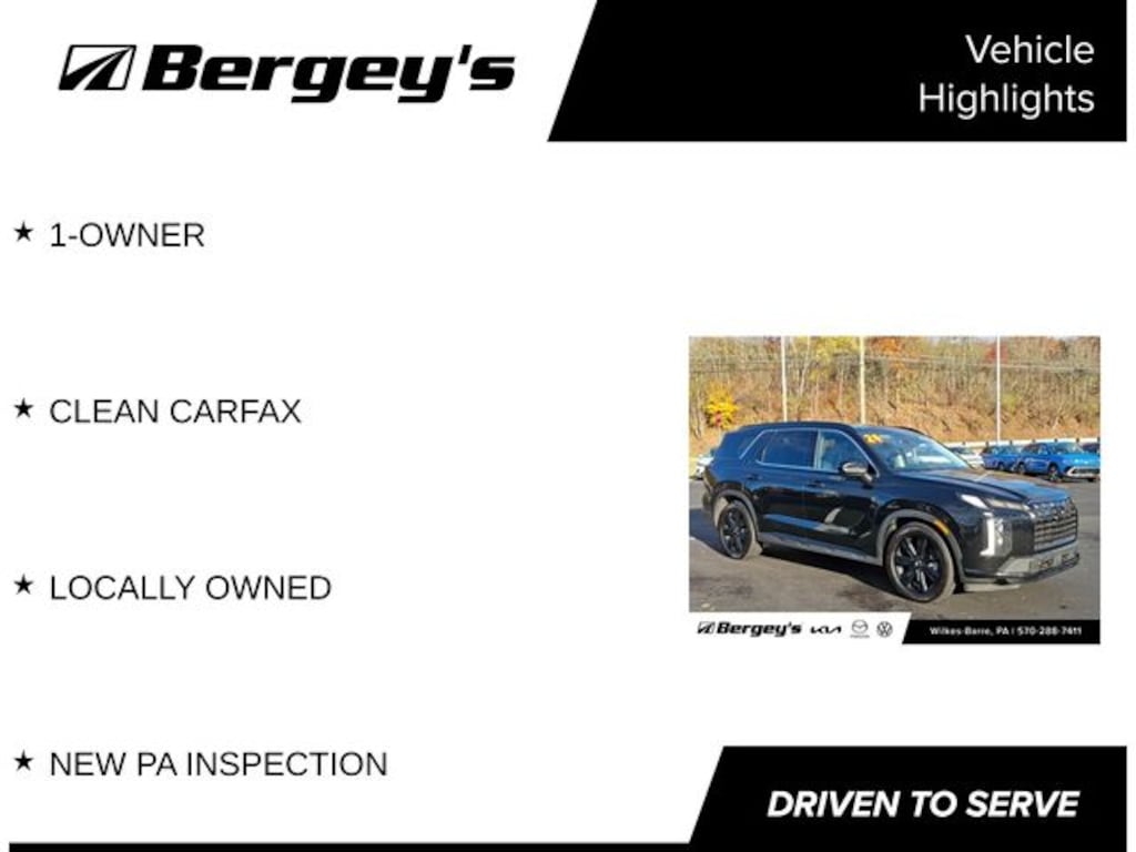 Abyss Black Pearl 2024 Hyundai Palisade XRT AWD 8-Speed Automatic with SHIFTRONIC V6 1-OWNER, CLEAN CARFAX, LOCALLY OWNED, NEW PA INSPECTION.