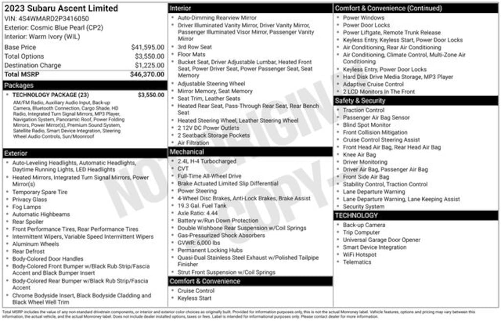 Cosmic Blue 2023 Subaru Ascent Limited AWD Lineartronic CVT 2.4L 4-Cylinder DOHC 16V